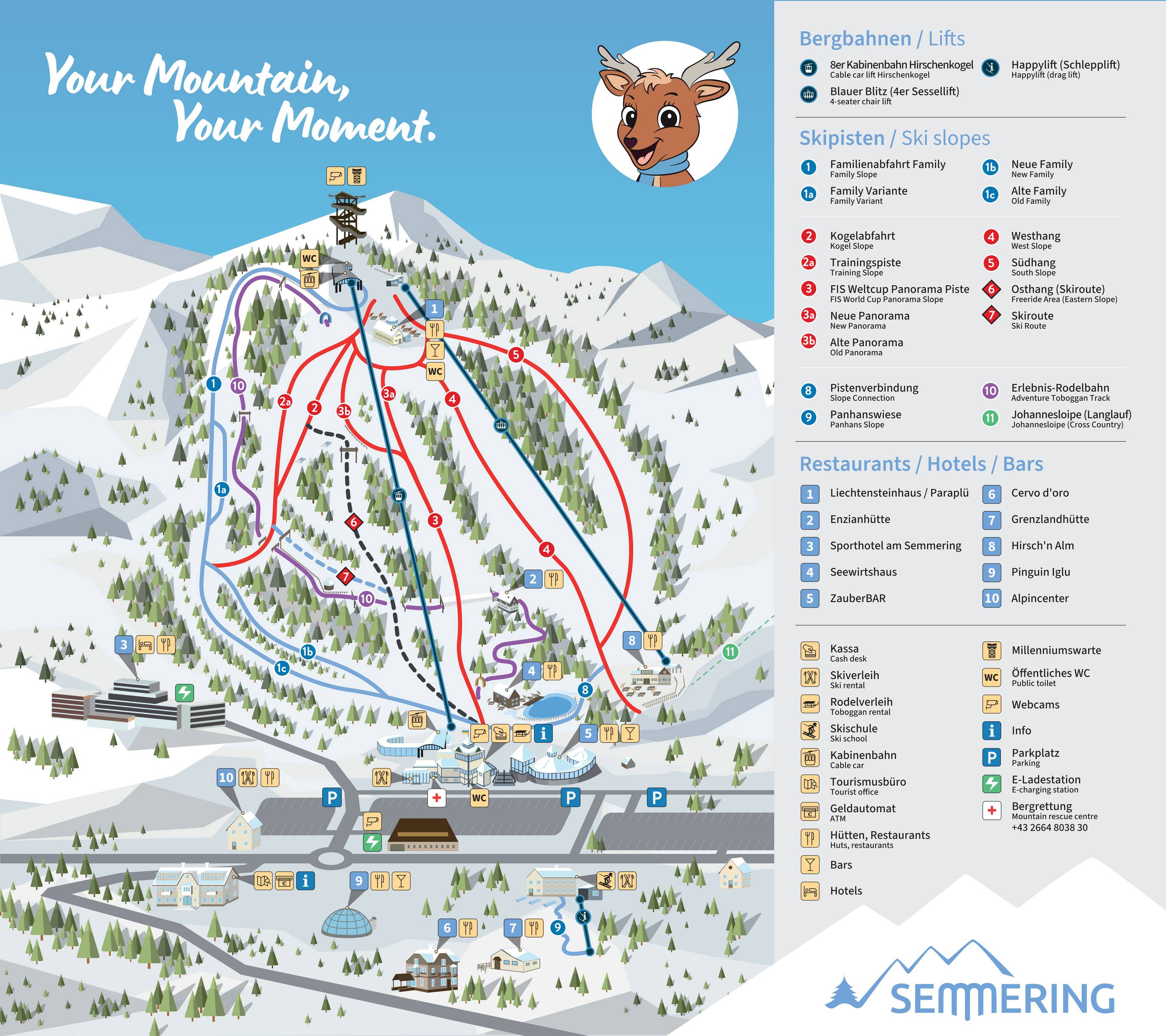 Orientierung (Pistenplan, Informationstafeln, Ausschilderung) und Sicherheit im Skigebiet Zauberberg Semmering