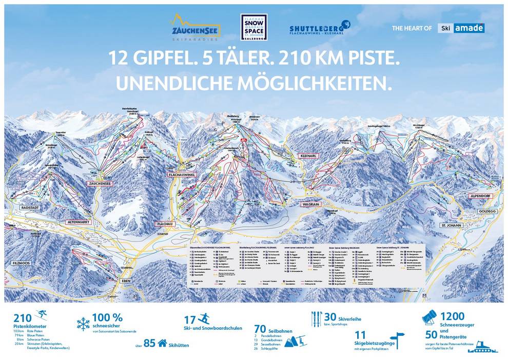 Die neue Panorama-Link Bahn verbindet die Skigebiete Zauchensee/Flachauwinkl/Kleinarl mit dem Snow Space Salzburg. Damit entsteht eine der größten und abwechslungsreichsten Wintersportregionen Europas im Herzen von Ski amadé: Mit 210 Pistenkilometern, 70 Seilbahnen, coolen Freestyle-Parks und unzähligen Freeride-Hotspots. Erstmals ist Skischaukeln von Alpendorf bis Zauchensee möglich (Skibus zwischen Flachauwinkl & Shuttleberg)!