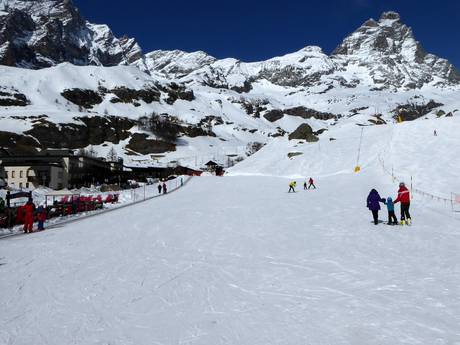 In Breuil-Cervinia und Valtournenche gibt es jeweils große Kinderbereiche mit Übungsarealen und großen Kinderspielplätzen. Leichte Pisten liegen rund um die Kinderbereiche.