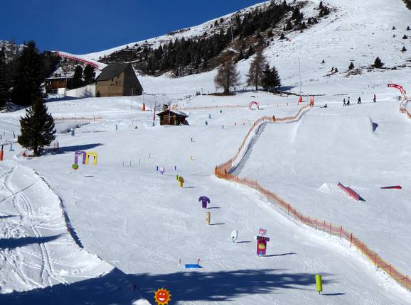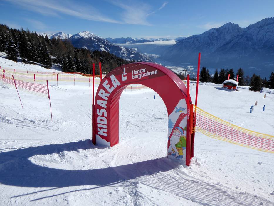 Die Kids Area der Lienzer Bergbahnen befindet sich in der Fun & Race Area an der Vierersesselbahn Wartschenbrunn. Sie bietet einen lustige Figuren, Hindernisse, einen Tunnel, Wellen und kleine Sprünge.