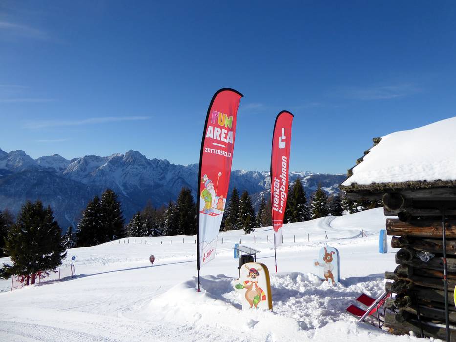 Das Skigebiet Zettersfeld hat sich zu einem echten Kinder-Erlebnisberg entwickelt. Im Kinderland der Skischule Lienzer Dolomiten können die Kleinsten spielerisch ihre ersten Schwünge üben. Die Fun & Race Area am Zettersfeld vereint Kinderland, Funpark und Riesentorlaufstrecke in einem großzügigen Bereich. Dank der breiten, übersichtlichen Pisten ist das Skigebiet ideal für Familien geeignet. Jugendliche zahlen bis zum 18. Lebensjahr den günstigen Kindertarif. Als zertifiziertes Tiroler Familienskigebiet bietet das Zettersfeld beste Betreuung für die Jüngsten im Skikindergarten, während actionhungrige Kids und in der Fun Area, im Funpark oder auf der Riesentorlaufstrecke voll auf ihre Kosten kommen.