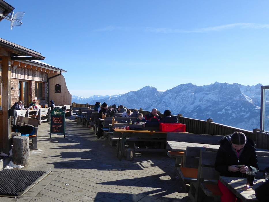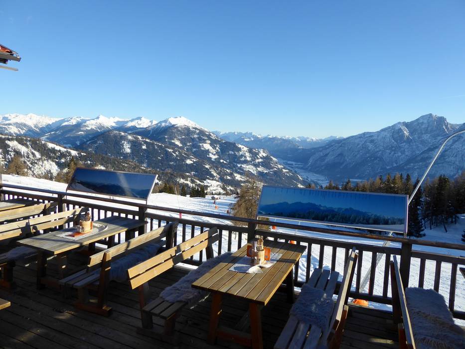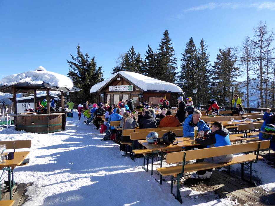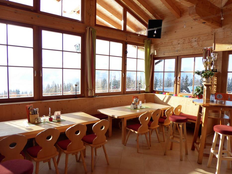 Die höchste Einkehrmöglichkeit im Skigebiet Zettersfeld bietet einen herrlichen Blick auf die Lienzer Dolomiten, den Hochstein und die Sonnenstadt Lienz. Die Sonnenterrasse mit Liegestühlen lockt bei schönem Wetter. Man kann hier oben genüsslich Prosecco mit täglich neu ausgewählten Schmankerln genießen.