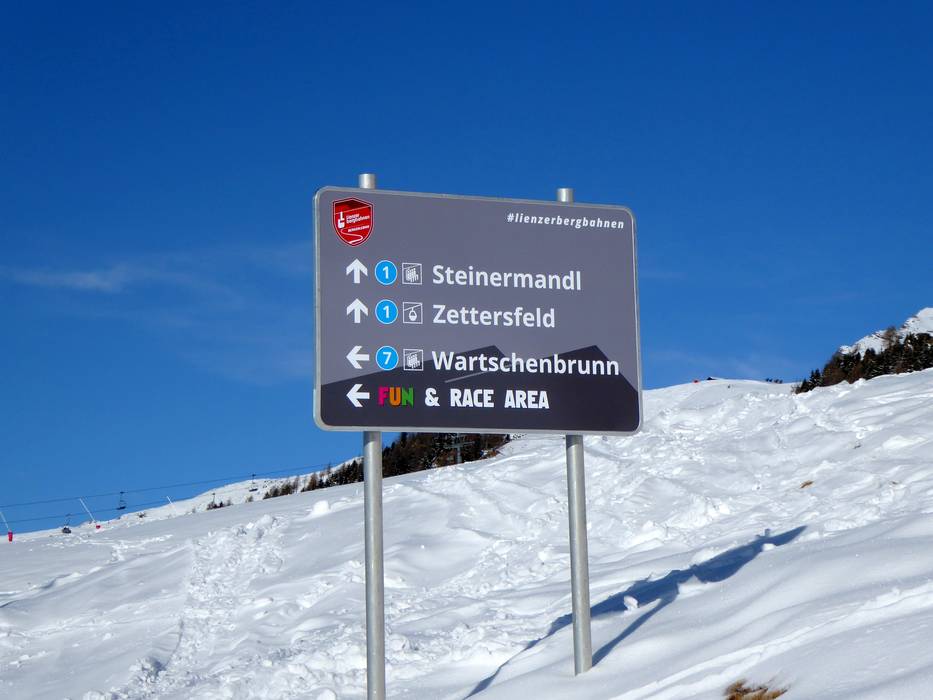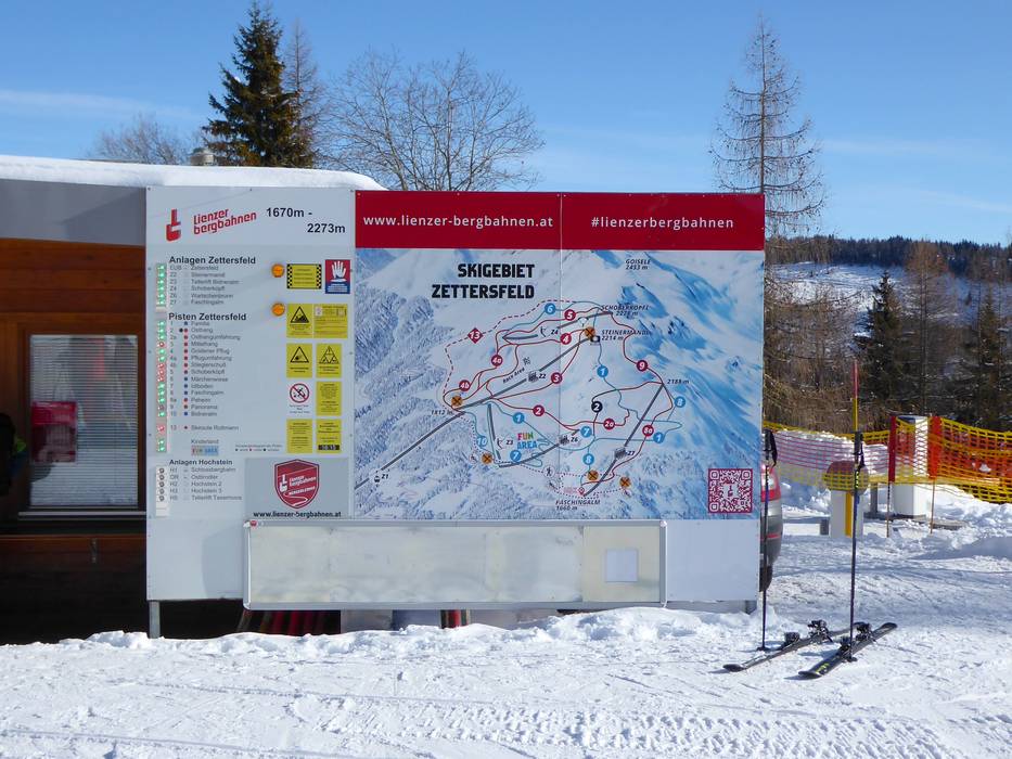 Orientierung (Pistenplan, Informationstafeln, Ausschilderung) und Sicherheit im Skigebiet Zettersfeld – Lienz