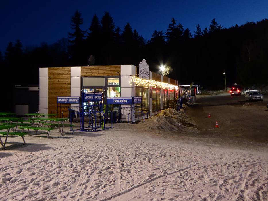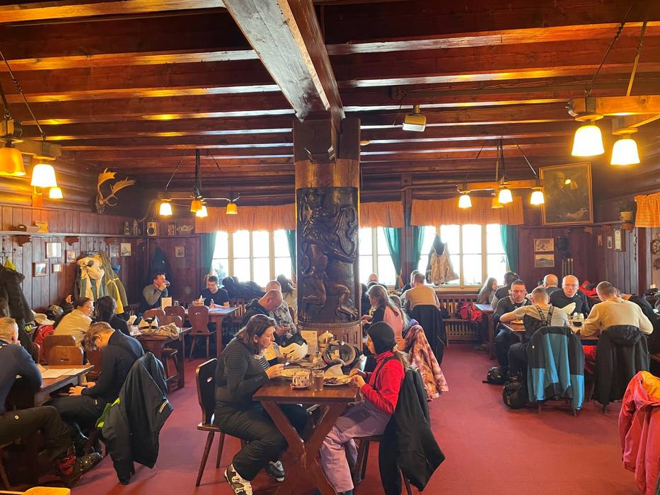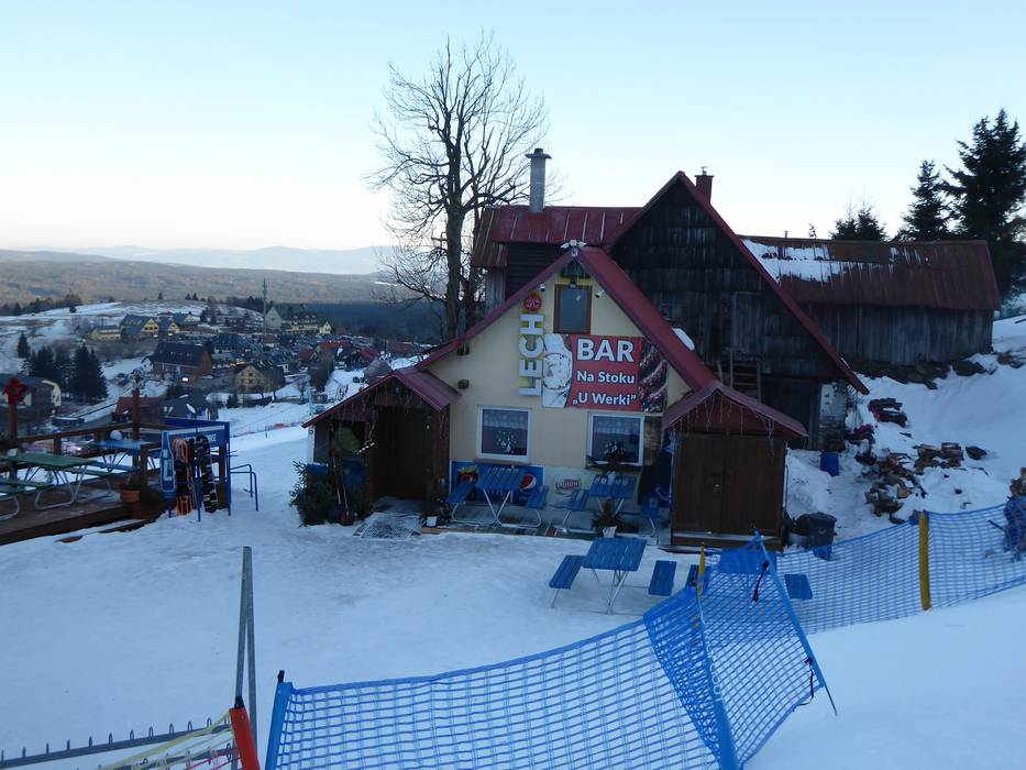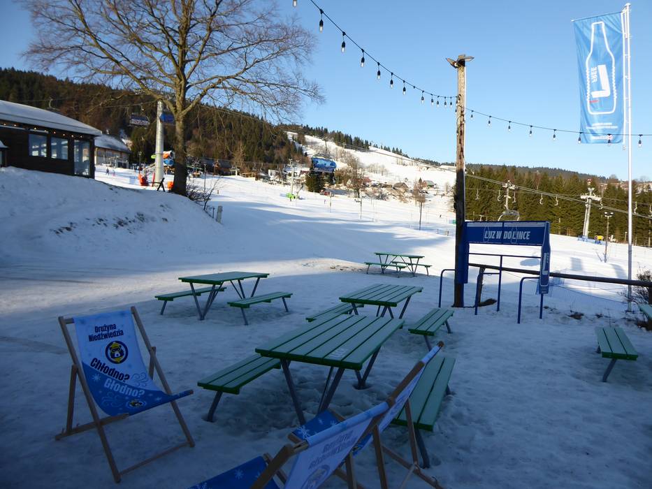 Die Orlica Zieleniec ist eine moderne und gemütliche Einkehr direkt an der Piste, die für ihre herzhaften polnischen Gerichte und die entspannte Atmosphäre bekannt ist. Besonders beliebt ist sie als stilvoller Ort für eine Pause mit gutem Essen und schönem Bergblick.