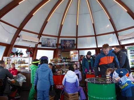 Die Einkehrmöglichkeiten in Zieleniec sind für ein Skigebiet dieser Größe besonders vielfältig und überzeugend. Direkt an den Pisten laden zahlreiche Hütten, Bars und Restaurants zum Verweilen ein. Typisch sind urige Berghütten und gemütliche Lokale, die klassische polnische Küche wie Suppen, Pierogi oder herzhafte Fleischgerichte sowie internationale Speisen servieren. Ein besonderes Highlight ist die Möglichkeit, in Tschechien einzukehren: Am Šerlich gelangt man bequem über die Grenze und kann dort entspannt eine Mittagspause in tschechischer Atmosphäre genießen.