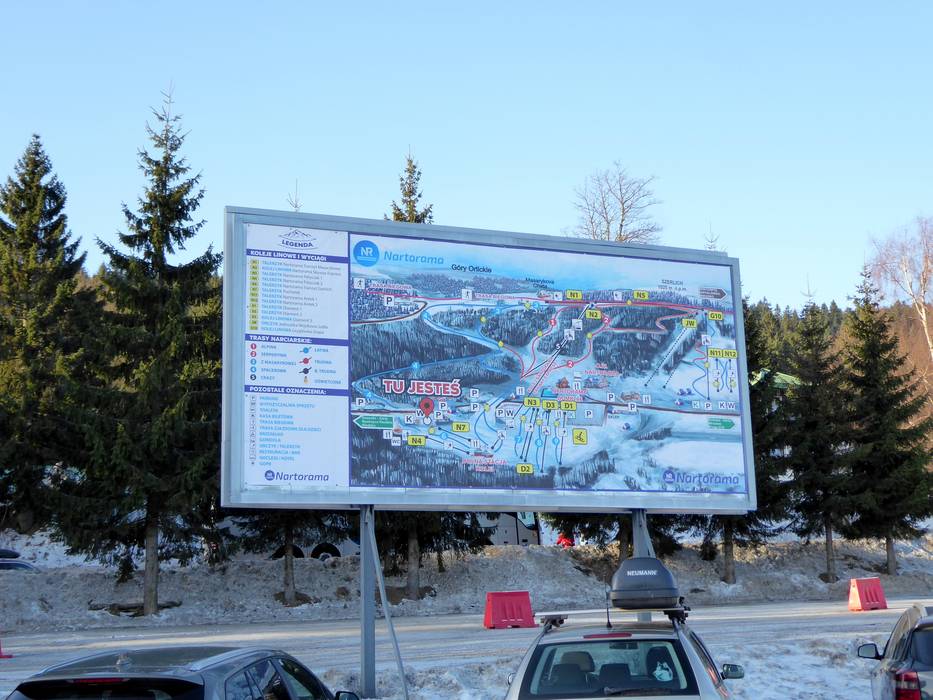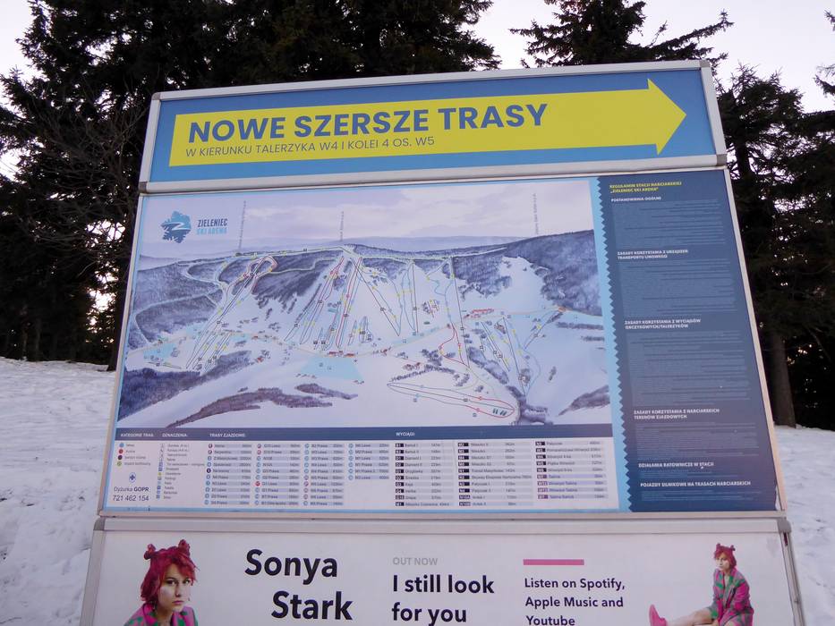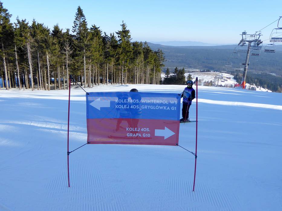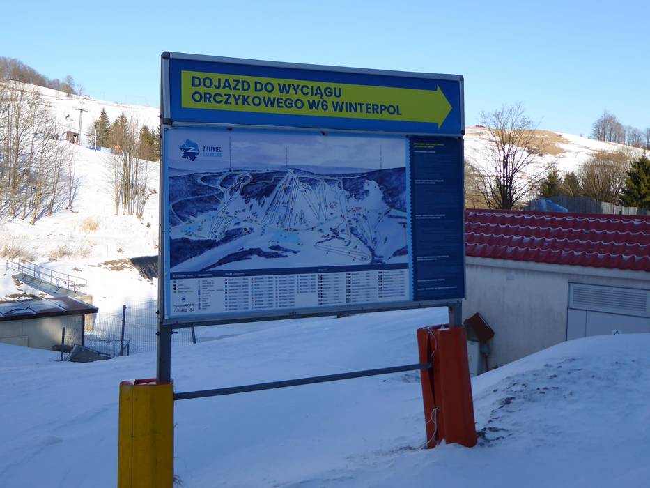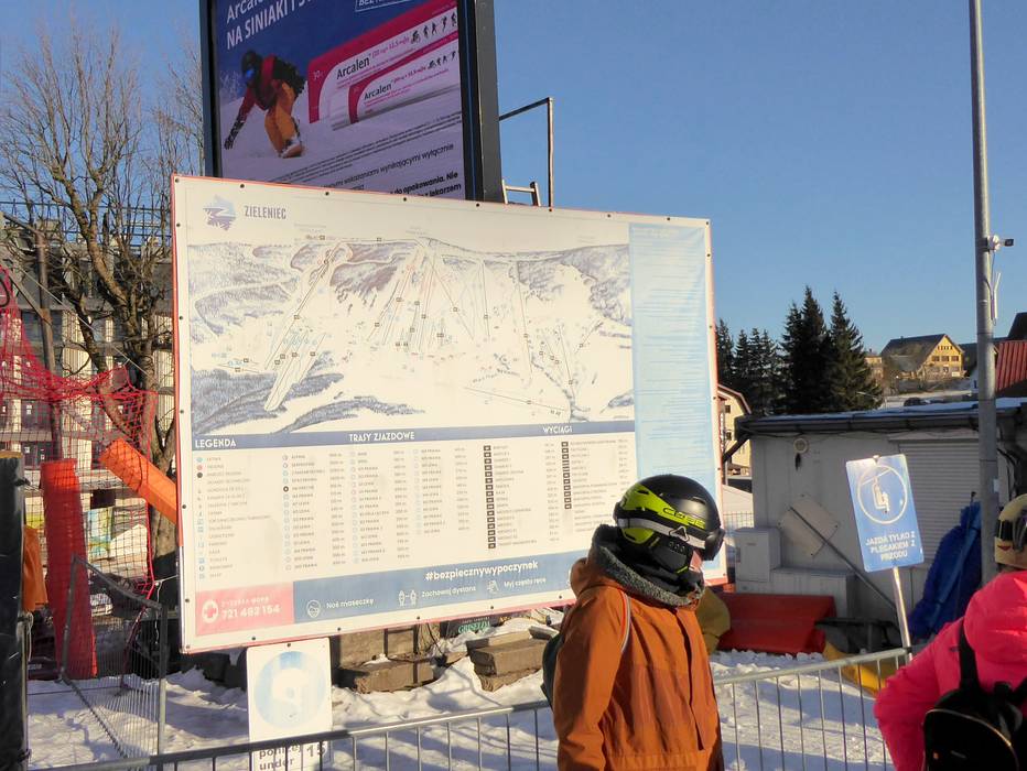 An allen wichtigen Punkten im Skigebiet Zieleniec stehen übersichtliche Pistenpläne zur Orientierung bereit. Die Abfahrten sind größtenteils gut ausgeschildert und erleichtern die Navigation im Gebiet. Aktuelle Betriebsinformationen, etwa zu geöffneten Liften und Pisten, sind jedoch ausschließlich über die Webseite abrufbar.