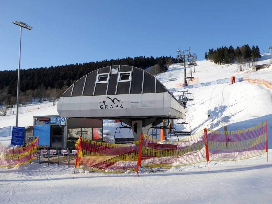 Die einzige Kombibahn in Polen: Skyway Express… Nachtskifahren in Zieleniec St. Anna Kirche (Kościół pw. św. Anny) mitten auf… Abendstimmung in Zieleniec Blick über das Skigebiet Zieleniec in Richtung… Blick über das Skigebiet Zieleniec Pisten Nr. 1 Alpina und Nr. 2 Serpentina Pisten 10 und 11 D3 Lewa und Prawa Skyway Express Nartorama (N2) - Kombibahn mit 6er… Winterpol Pomarańczowa (W3) - 6er… Winterpol Piątka (W5) - 4er Sesselbahn fix… Diament Zielona (D3) - 4er Sesselbahn fix… Mieszko Czerwona (M1) - 4er Sesselbahn fix… Gryglówka (G1) - 4er Sesselbahn fix geklemmt Grapa (G10) - 4er Sesselbahn fix geklemmt Leistungsstarke Beschneiung in Zieleniec Perfekt präparierte Piste im Skigebiet… Perfekt präparierte Piste im Skigebiet… Großer Pistenplan am Parkplatz Pistenausschilderung im Skigebiet Zieleniec Gepflegter Kassenbereich Nartorama Aufforstungsgebiete dürfen nicht befahren… Am Tellerlift wird der Bügel gereicht Berghütten Tipp Gawra Zieleniec Berghütten Tipp Masarykova chata Berghütten Tipp Bar Gryglówka Après-Ski Tipp Nartorama Arena Après-Ski Hot… Après-Ski Tipp Bar Gryglówka Après-Ski-Bar in Zieleniec Après-Ski-Bar in Zieleniec Blick auf die Unterkünfte direkt an den Pisten im… Nartorama Ośrodek Wypoczynkowy Tipp für die Kleinen - Winterpol Kinderland Tipp für die Kleinen - Übungsareale im… Tipp für die Kleinen - Funline Zieleniec Winterspielplatz in Zieleniec Das Förderband Bartuś ist ideal für Anfänger Anspruchsvollere Pisten am Skyway Express… Bild Zieleniec