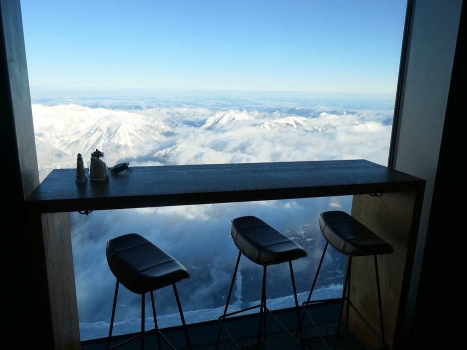 Das Gipfelrestaurant liegt auf knapp 3000 Metern Seehöhe. Von der Zugspitze sieht man 400 Berggipfel in 4 Ländern. Kulinarisch wird das beste aus den vier Ländern Italien, Österreich, der Schweiz und Deutschland geboten.