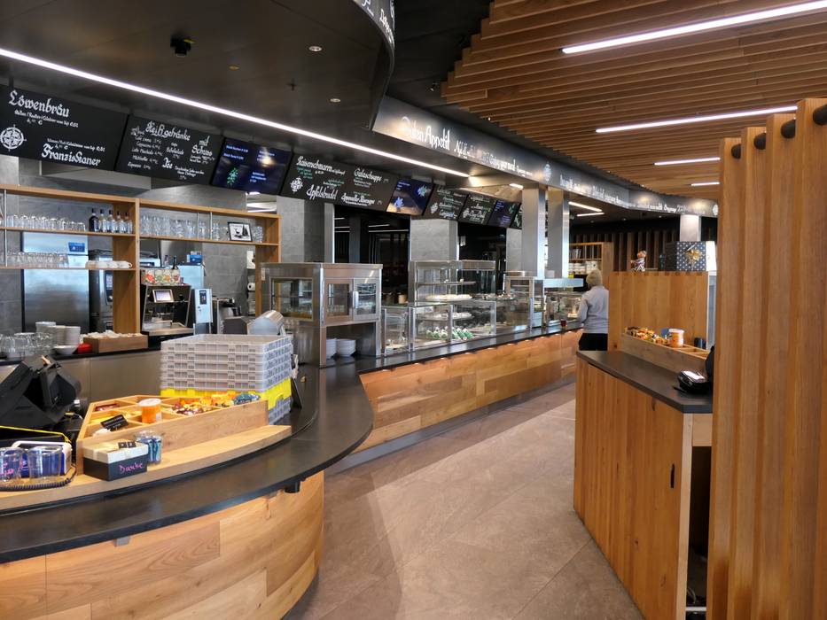 Das Gletscherrestaurant bietet Kaffee, Snacks und wechselnde Tagesgerichte bei Selbstbedienung. Hervorzuheben sind der gemütliche Innenraum und die herrliche Aussicht.