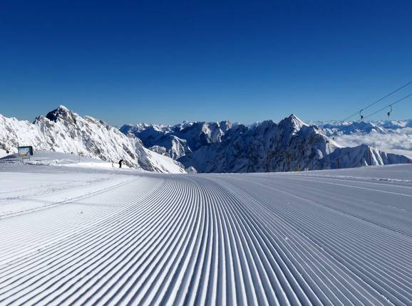 Die Pisten auf der Zugspitze sind in einem sehr guten Zustand. Mit modernem Gerät wird der Naturschnee täglich in Form gebracht.
