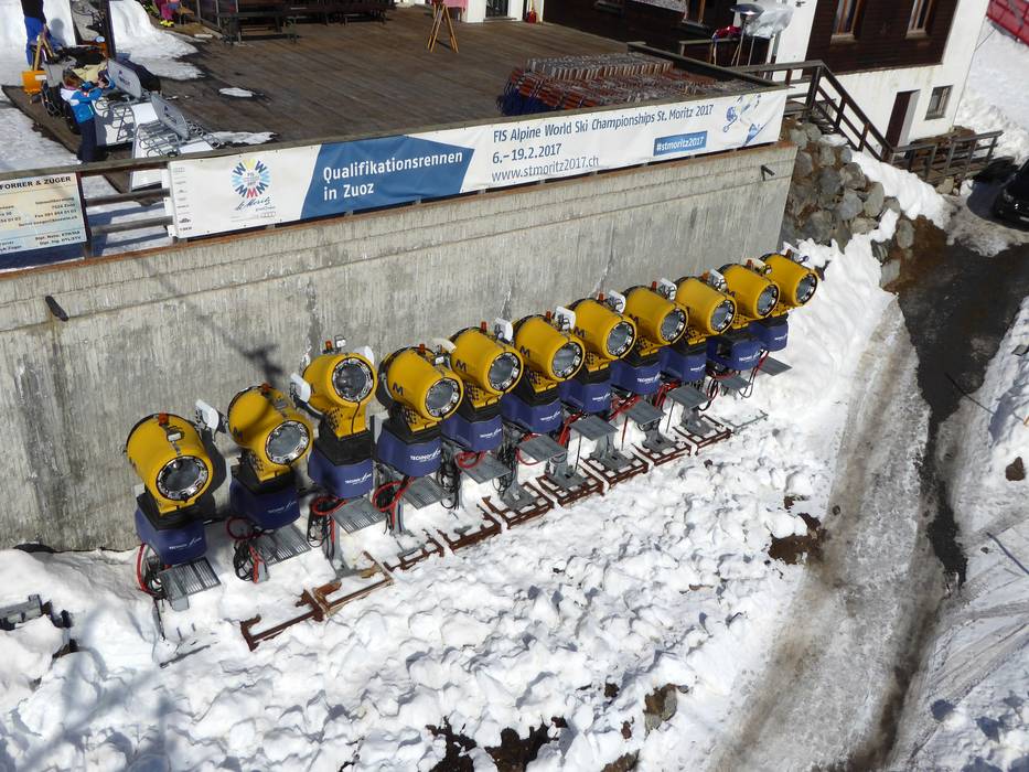 Das Skigebiet Zuoz wird umfassend mit leistungsfähigen Schneekanonen und Schneilanzen vom Berg bis ins Tal beschneit. Aufgrund der Höhenlage ist das Skigebiet sehr schneesicher. Nachdem das Skigebiet sehr südseitig ausgerichtet ist endet die Saison bereits immer gegen Ende März.