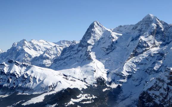 Die Liste der besten Skigebiete in der Jungfrau Region führt das Skigebiet Kleine Scheidegg/Männlichen – Grindelwald/Wengen mit 4,2 von 5 Sternen an. Die größten Skigebiete bieten bis zu 101 Pistenkilometer (Kleine Scheidegg/Männlichen – Grindelwald/Wengen). Bis auf eine Höhe von 2.970 Metern reichen die höchsten Skigebiete zum Skifahren in der Jungfrau Region (Schilthorn – Mürren/Lauterbrunnen). Und unser Tipp mit dem besten Preis-Leistungsverhältnis ist das Skigebiet Kleine Scheidegg/Männlichen – Grindelwald/Wengen.