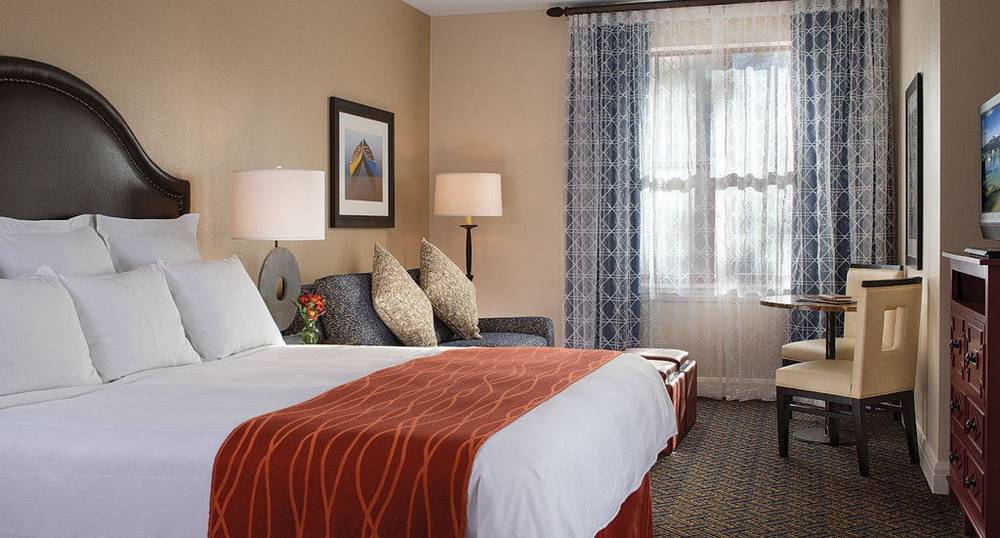 Die beste Lage, direkt an der Gondelbahn ins Skigebiet von Heavenly und direkt in der Heavenly Village mit vielen Restaurants und Geschäften. Man geht aus dem Hotel holt sich seine Ski bei der freundlichen Dame am Skiraum ab und nur wenige Schritte weiter steigt man in die Gondelbahn, die einen direkt ins Skigebiet bringt. Die geräumigen Zimmer sind alle modern und hell eingerichtet. Bei den 2-Schlafzimmer-Suiten hat man einen Kamin und eine voll ausgestattete Küche mit Waschmaschine und Trockner, sowie eine Whirlwanne mit dabei. Nach sportlichen Aktivitäten laden ein ganzjährig beheizter Aussenpool, Kinderpool, sowie 3 heisse Whirlpools ein. Nach dem Skifahren kann man am offenen Feuer vor dem Fire + Ice den Tag ausklingen lassen. Das Fire + Ice Restaurant bietet Essen vom heissen Stein an und ist sehr beliebt, da man dort zu guten Preisen gesundes und leckeres Essen vorfindet. Das Auto braucht man während des ganzen Aufenthalts nicht, es wird für 19 US$ direkt im Hotel geparkt und sollte man doch einen Ausflug machen möchten, so genügt ein Anruf und das Auto wird gebracht.