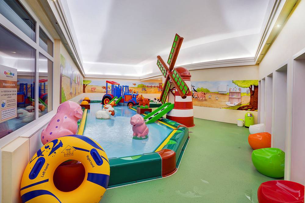 Für Kinder ist das Oberjoch Familux Resort wirklich ein Paradies. 25 ausgebildete Kinderpädagogen und Animateure kümmern sich täglich 12 Stunden um das Wohl der Kleinen. Selbst der „Babyclub“, für Babys ab der 1. Lebenswoche, ist im Preis enthalten und kostet nichts extra. Die Panorama-Badelandschaft beinhaltet einen In- und Outdoorpool, einen großen Whirlpool, das tolle Kleinkinderbecken „Plantschen auf dem Bauernhof“, sowie die 128 m lange Mega-Wasserrutsche. Eine Softplayanlage, Indoor-Gokart, Kino und eine Familien-Bowlingbahn sind nur einige Highlights, die im Indoor-Spielbereich angeboten werden. Insgesamt umfasst das Areal über 2000 Quadratmeter.