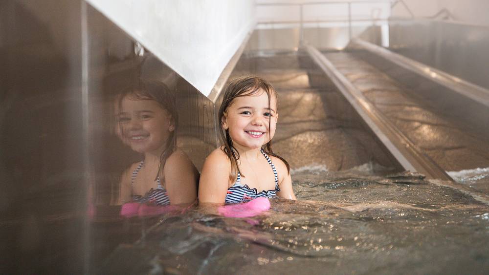 Der Wellnessbereich ist umfassend. Die Wasserwelt glänzt mit einem Indoor-Pool, einem Kinderpool und Rutschen. Sauna, Dampfbad, Infrarotkabine, Ruheräume, Anwendungen und Wellnessprodukte sorgen für Entspannung.