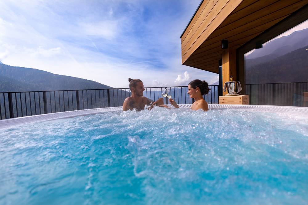 Bei deiner Rückkehr kannst du im Restaurant „San Martin“ Sarner Spezialitäten, Südtiroler Köstlichkeiten und mediterrane Delikatessen verkosten, im Panorama-Wellness-Bereich mit Rooftop-Spa entspannen oder in deinem Zimmer mit Gipfelblick traute Zweisamkeit genießen.