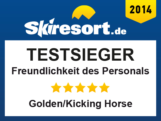 Das Skigebiet Golden/Kicking Horse wurde von Skiresort.at, dem weltweit größten Testportal von Skigebieten, als Testsieger 2014 in der Kategorie „Freundlichkeit des Personals“ ausgezeichnet.