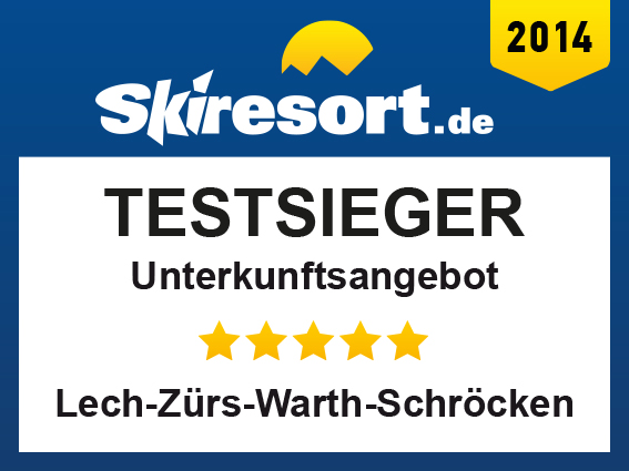 Das Skigebiet Lech-Zürs-Warth-Schröcken wurde von Skiresort.at, dem weltweit größten Testportal von Skigebieten, als Testsieger 2014 in der Kategorie „Unterkunftsangebot direkt an den Pisten & Liften“ ausgezeichnet.