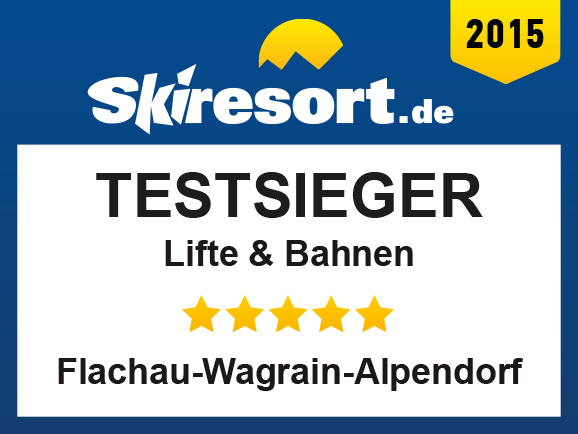 Das Skigebiet Flachau-Wagrain-Alpendorf wurde von Skiresort.at, dem weltweit größten Testportal von Skigebieten, als Testsieger 2015 in der Kategorie „Lifte & Bahnen“ ausgezeichnet.