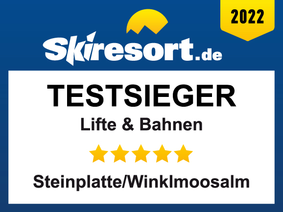 Das Skigebiet Steinplatte/Winklmoosalm wurde von Skiresort.at, dem weltweit größten Testportal von Skigebieten, als Testsieger 2022 in der Kategorie „Lifte & Bahnen“ ausgezeichnet.