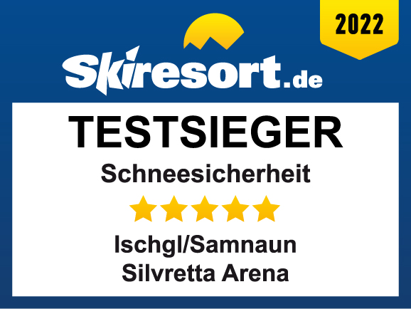 Das Skigebiet Ischgl/Samnaun – Silvretta Arena wurde von Skiresort.at, dem weltweit größten Testportal von Skigebieten, als Testsieger 2022 in der Kategorie „Schneesicherheit“ ausgezeichnet.