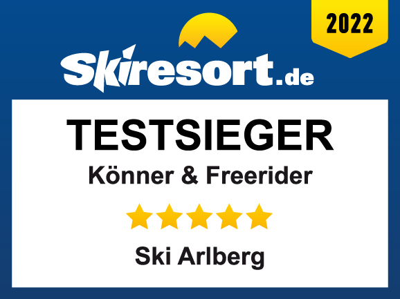 Das Skigebiet Ski Arlberg wurde von Skiresort.at, dem weltweit größten Testportal von Skigebieten, als Testsieger 2022 in der Kategorie „Könner, Freerider“ ausgezeichnet.