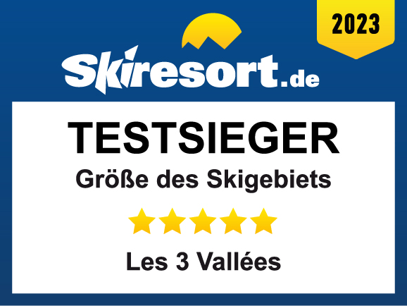 Das Skigebiet Les 3 Vallées wurde von Skiresort.at, dem weltweit größten Testportal von Skigebieten, als Testsieger 2023 in der Kategorie „Größe des Skigebiets“ ausgezeichnet.