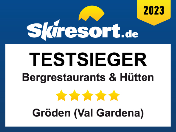 Das Skigebiet Gröden (Val Gardena) wurde von Skiresort.at, dem weltweit größten Testportal von Skigebieten, als Testsieger 2023 in der Kategorie „Bergrestaurants & Hütten“ ausgezeichnet.