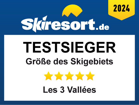 Das Skigebiet Les 3 Vallées wurde von Skiresort.at, dem weltweit größten Testportal von Skigebieten, als Testsieger 2024 in der Kategorie „Größe des Skigebiets“ ausgezeichnet.