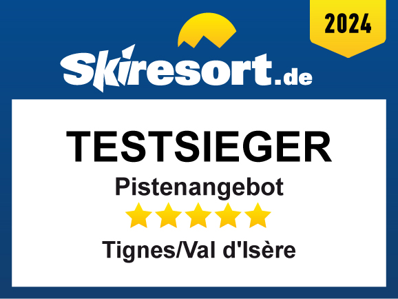 Das Skigebiet Tignes/Val d'Isère wurde von Skiresort.at, dem weltweit größten Testportal von Skigebieten, als Testsieger 2024 in der Kategorie „Pistenangebot“ ausgezeichnet.