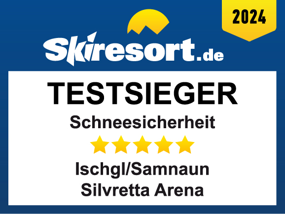 Das Skigebiet Ischgl/Samnaun – Silvretta Arena wurde von Skiresort.at, dem weltweit größten Testportal von Skigebieten, als Testsieger 2024 in der Kategorie „Schneesicherheit“ ausgezeichnet.