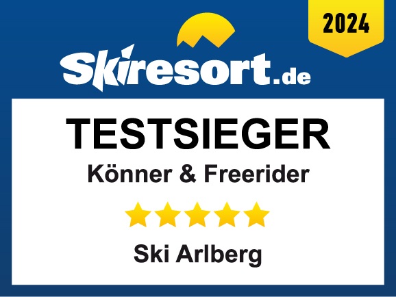 Das Skigebiet Ski Arlberg wurde von Skiresort.at, dem weltweit größten Testportal von Skigebieten, als Testsieger 2024 in der Kategorie „Könner, Freerider“ ausgezeichnet.