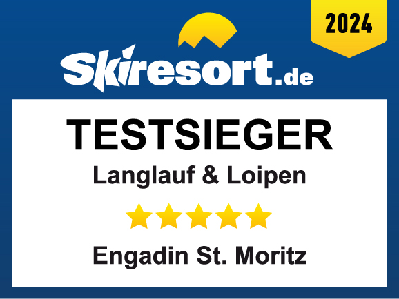 Engadin St. Moritz wurde von Skiresort.at, dem weltweit größten Testportal von Skigebieten, als Testsieger 2024 in der Kategorie „Langlauf und Loipen“ ausgezeichnet.