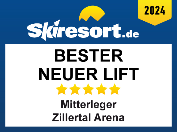 Die 6er-Sesselbahn Mitterleger im Skigebiet Zillertal Arena wurde von Skiresort.at, dem weltweit größten Testportal von Skigebieten, als bester neuer Lift 2024 ausgezeichnet.