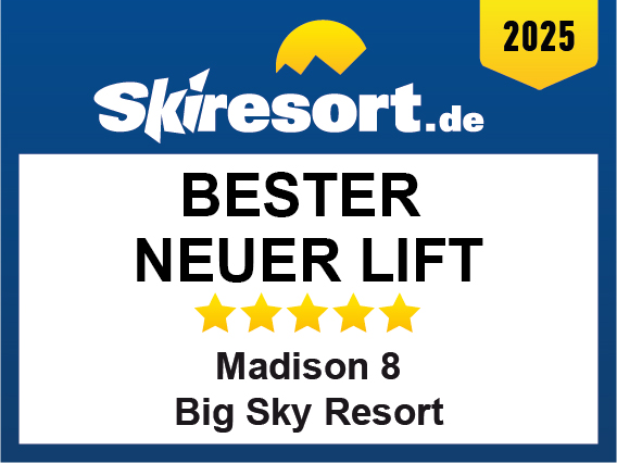 Die 8er-Sesselbahn Madison 8 im Skigebiet Big Sky Resort wurde von Skiresort.at, dem weltweit größten Testportal von Skigebieten, als bester neuer Lift 2025 ausgezeichnet.