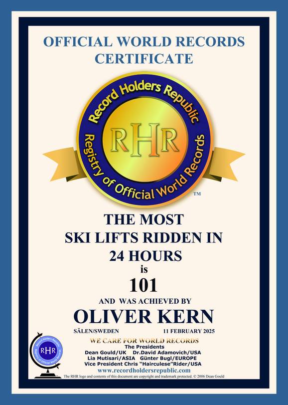 In den Skigebieten der Region Sälen in Schweden wurde am 11.02.2025 ein neuer Weltrekord von Oliver Kern von Skiresort.at aufgestellt.