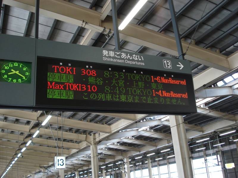 - 8.33 Uhr: Pünktlich fährt der Shinkansen Toki Nr. 308 Superexpress Richtung Tokio ab.
