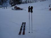 - 7.05 Uhr: Es geht los, die ersten Schwünge im Naspa Ski Garden.